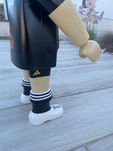 Les pochoirs arriveront dans 1 semaine ce qui laisse du temps pour peindre le maillot et les manches des bras en bleu, le short, les chaussures et les bandes Adidas sur les chaussettes en blanc.